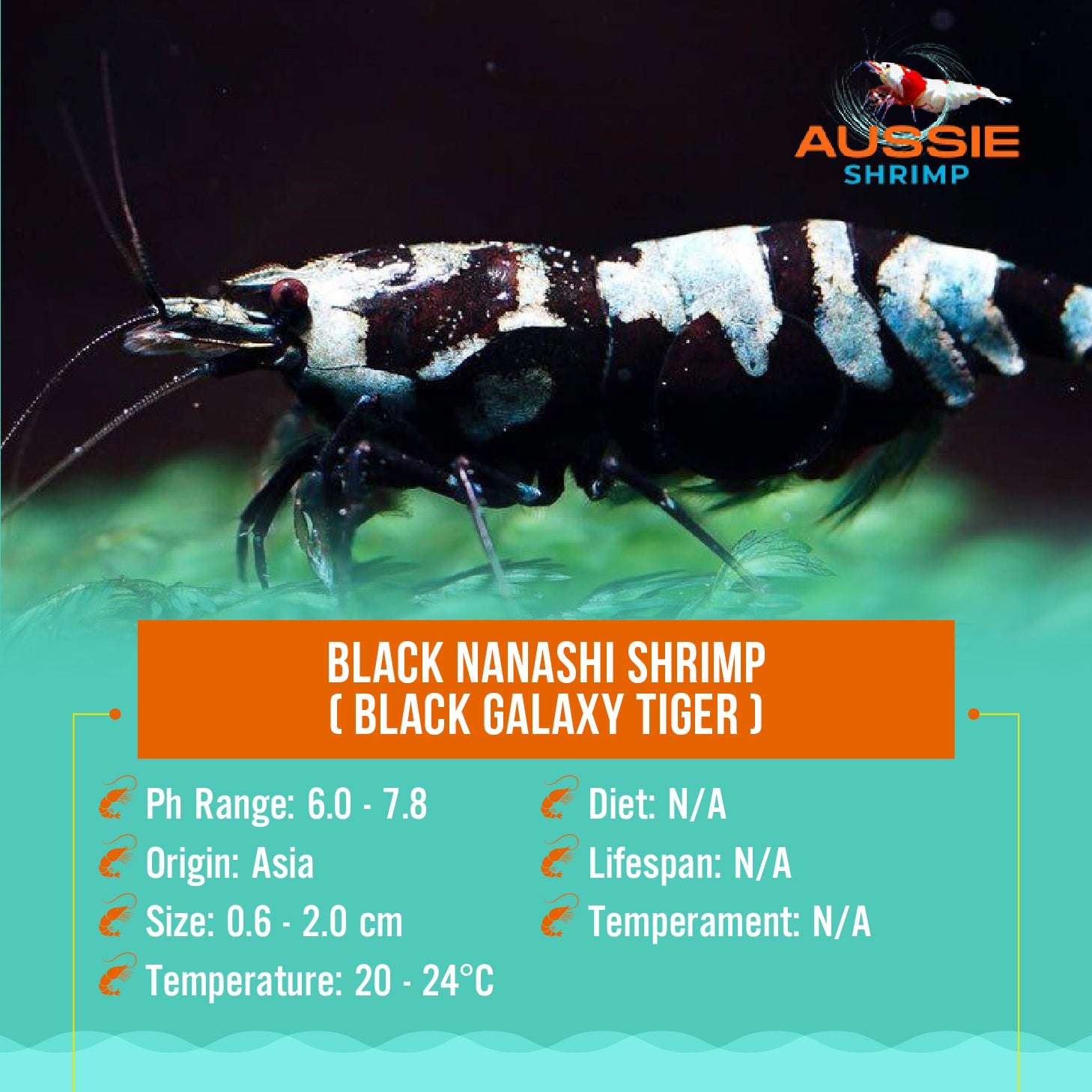 Black Nanashi shrimp are a variety of freshwater shrimp that are highly sought after by aquarium enthusiasts. They are known for their striking black and white stripe coloration around the tail area , which makes them a great choice for nano aquariums.