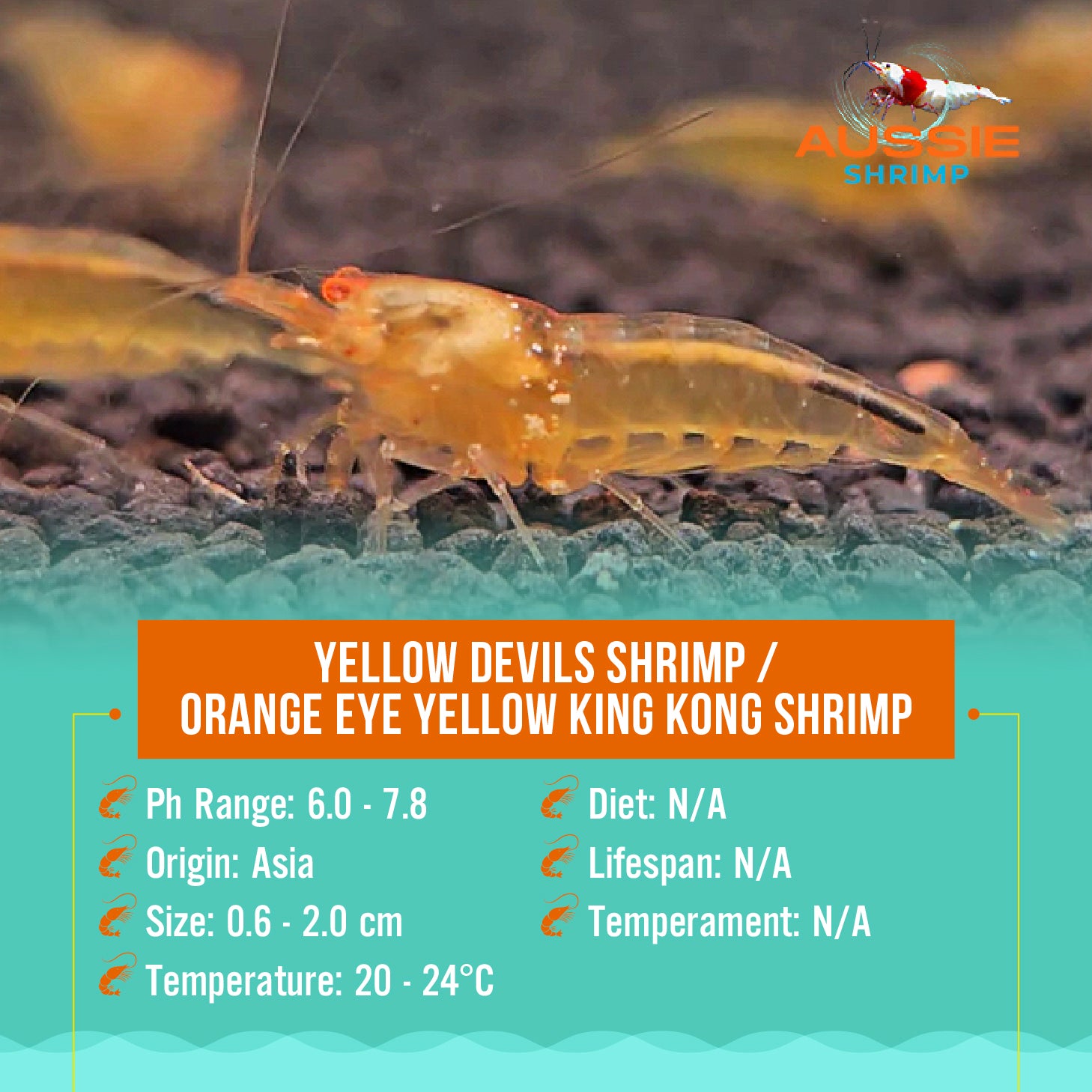 Compatibility: The Orange Eye Yellow King Kong Shrimp are generally peaceful and can be kept with other non-aggressive aquarium inhabitants. However, they are best kept in a dedicated shrimp-only aquarium or with other dwarf shrimp species.